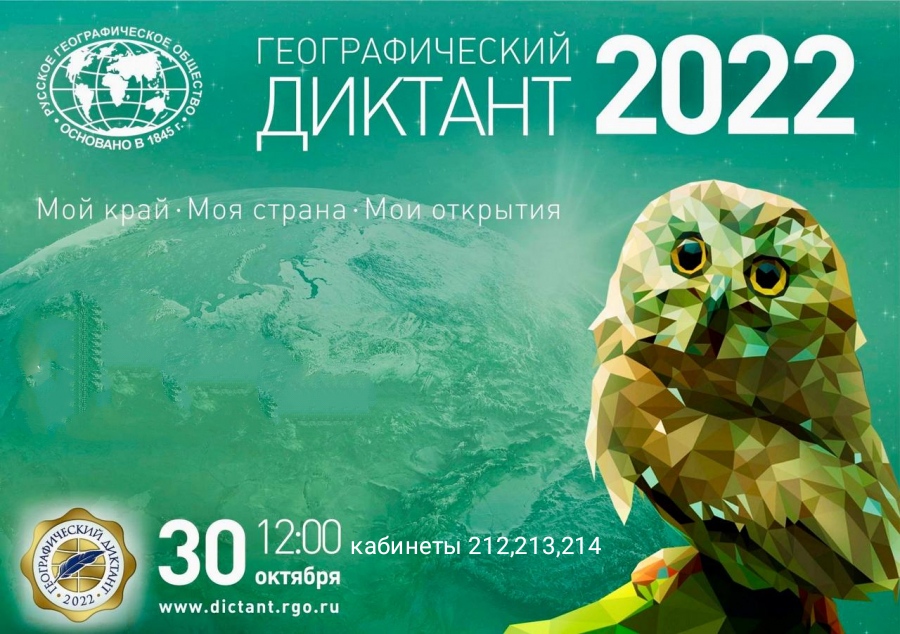 30 октября в 12:00 Русское географическое общество проведёт VIII Географический диктант. В 2022 году масштабная просветительская акция РГО охватит все континенты. Её слоган: "Мой край. Моя страна. Мои открытия".